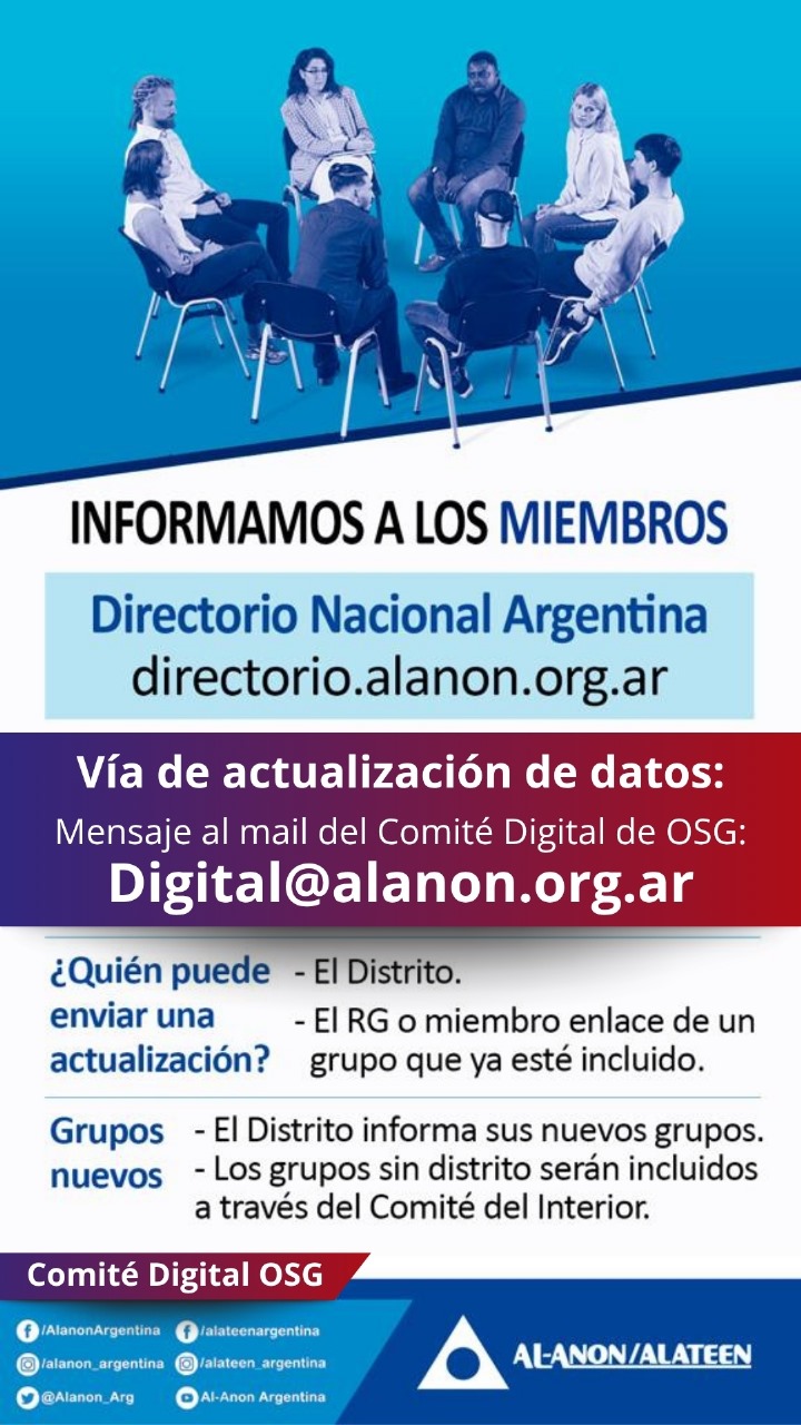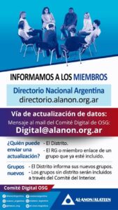 Para actualizar datos de grupos del Directorio Nacional hay que enviar un email al Comité Digital de OSG digital@alanon.org.ar