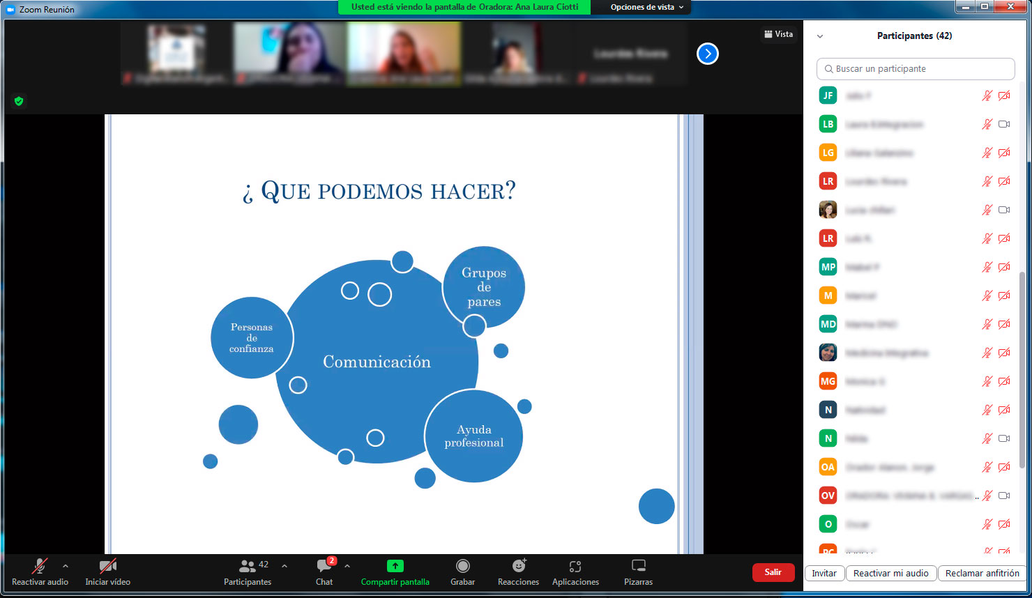 Animación compartida por el profesional disertante: